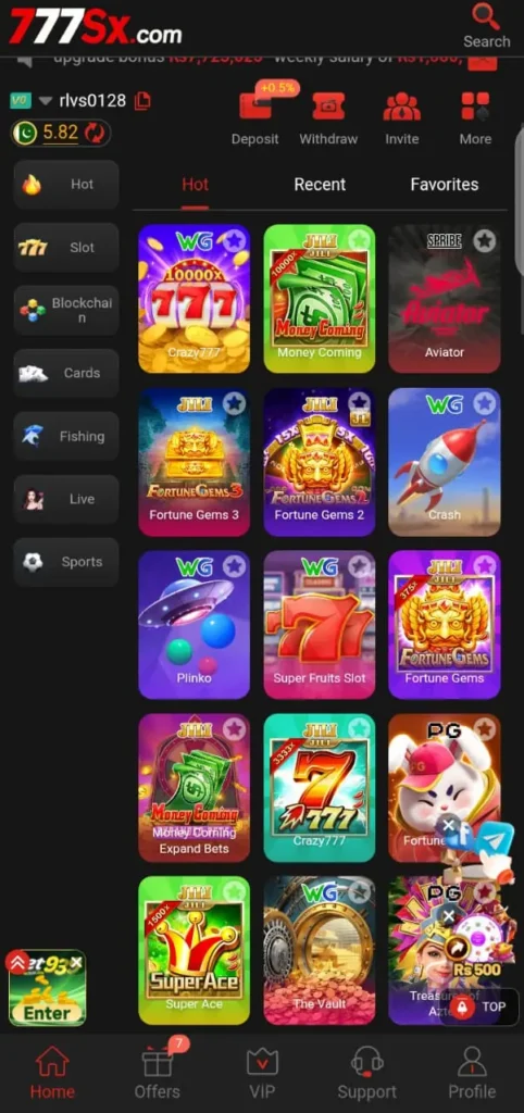 The 777SX Game is an online earning and gaming app where players can play different types of games and win real cash rewards. It offers a variety of games such as color prediction, spinning games, slot-style games, quizzes, and many other options. The more you play, the more chances you get to win. It gives users a safe and easy environment where they can not only enjoy gaming but also earn money with smart gameplay. You only need a mobile phone and internet to start playing the 777SX game.