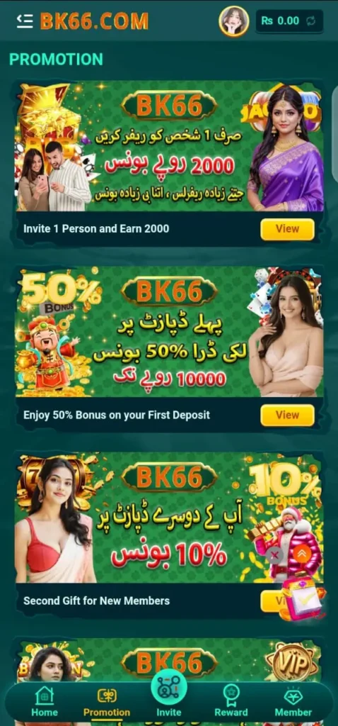 The interface is smooth, the dashboard is user-friendly, and the game loads even on slow internet. BK66 Game is mostly used in Pakistan, India, Bangladesh, and other Asian countries. The biggest reason behind its popularity is its fast deposit and instant withdrawal system, which makes earning quick and transparent.