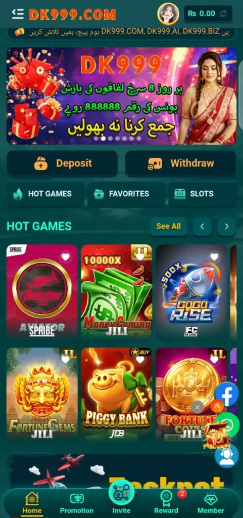 DK999 Game brings a modern style of online gambling with different casino games such as slots, live casino, card games, fishing, table games, and more. The platform is designed especially for Pakistani users, offering local payment methods, Urdu-friendly support, and convenient withdrawals through Jazz Cash, Easy paisa, and bank transfers. Whether you are new to casino gaming or an experienced player, DK999 gives everyone a fair chance to win real rewards. One of the biggest reasons behind the success of DK999 is its secure and safe playing environment. Players can deposit and withdraw instantly without any delays. The app also offers daily bonuses, welcome rewards, VIP benefits, and promotional offers, making it attractive for both beginners and long-term users.