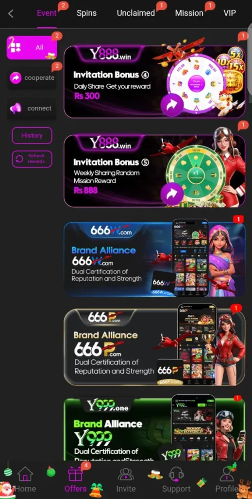 Y444 Game offers various free bonuses to keep players motivated and engaged. New users can get a welcome bonus on registration and first deposit, while daily login rewards give small cash or points for simply opening the app. Players can also earn referral bonuses by inviting friends, and participate in special promotions or reload bonuses to get extra rewards. These bonuses make gameplay more exciting and increase the chances of winning real cash.